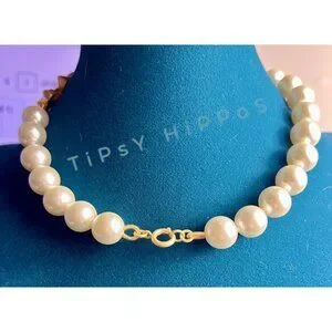 Stunning Authentic Roxanne Gold and Pearl Necklace sits just below the collarbone and fastens with a carved double-T in matte gold.