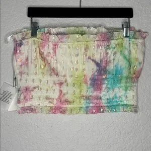 NWT Revolve Majorelle Siesta Key Tie-Dye Metallic Heart Crop Top XL Bandeau