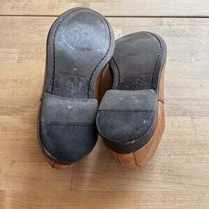 Crafted from brown leather with an almond toe shape, these Banana Republic men's size 11 M dress shoes feature a classic lace-up closure. The oxford style with rubber outsole offers comfort and durability, making them suitable for both office and casual settings. The solid brown color and branded accents add a touch of sophistication to the timeless design, perfect for the modern man looking for a stylish and versatile footwear option.