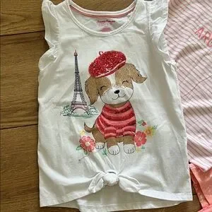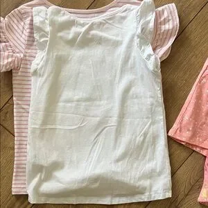 Charming short sleeve tees with playful L.O.L. Surprise! designs. Features pink and white colors. The tee with matching shorts are peach colored