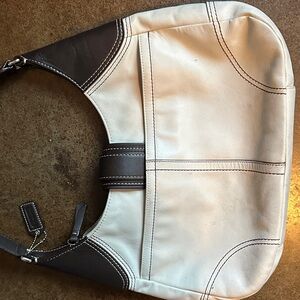 Coach Hobo Bag - Beige/Gray and Dark Brown Trim with Buckle and Silver Hardware