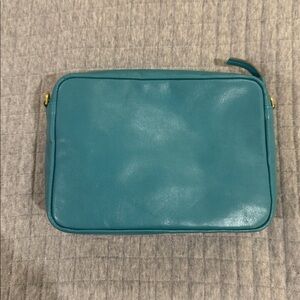 Great used condition Clare V. Turnlock Midi Sac in beautiful turquoise blue with gold hardware and front slip pocket. Minor scuff marks on the bottom front as shown. Priced accordingly.