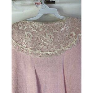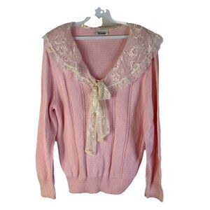 Vintage 80s Coquette Cottage Lace Cape Pussybow Collar Sweater Pink