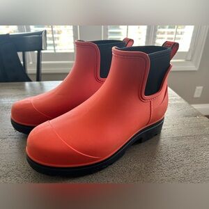 UGG women’s size 7, ankle rain boots. This are a vibrant deep orange color. Worn twice.