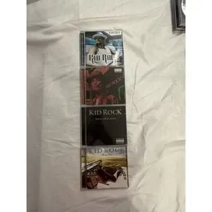 The Kid Rock 4 LOT includes four CDs, with titles like "Born Free," "Rock n Roll Jesus," "Cocky," and "Devil Without A Cause." The CDs are in very good condition and come in a standard jewel case. Featuring the artist Kid Rock, the CDs fall under the rock genre and include the original inner sleeve and cover. Perfect for any fan of rock music, this lot offers a collection of hits from the artist's albums.