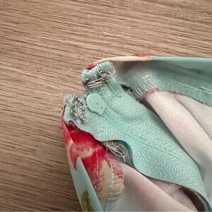 Show Me Your Mumu Skater Mini Skirt Devon Floral Print Blue Pink Lined Size S - in excellent used condition. When laid flat, waist of skirt measures approximately 12.5 inches across, length is approximately 15 inches.