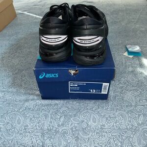 ASICS men’s Sleek black design with superior cushioning. Ideal for running and workouts or daily wear w support. Size 13. NWT. Smoke free