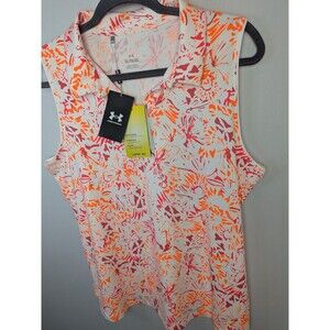 Under Armour Polo Shirt Womens XL White Active Sleeveless Golf UPF 30+ Anti Odor