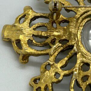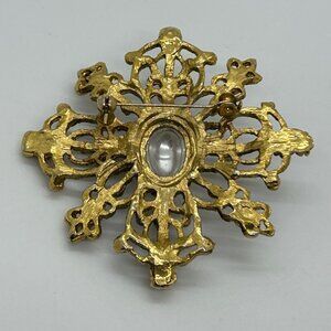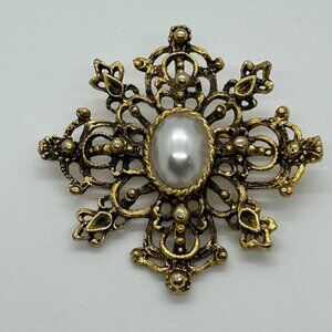 Vintage Gold-tonePearl Brooch Pin Filigree Cross Victorian Revival Statement