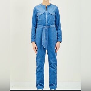 Just Female Harlow Courduroy Blue Jumpsuit with Waist Tie
