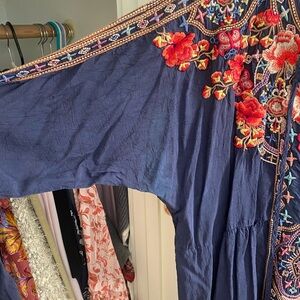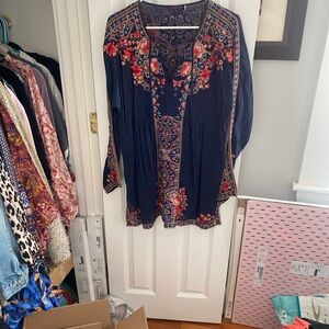 Johnny Was Navy Blouse with multicolored Embroidery