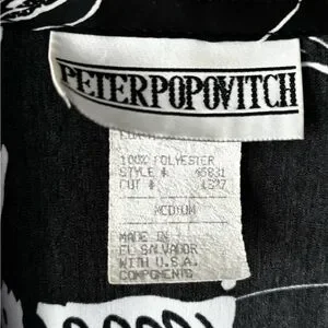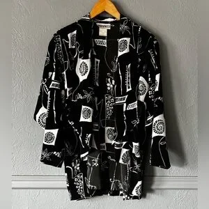 Vintage Peter Popovitch Black & White Abstract Print Open Front Jacket M