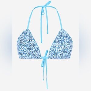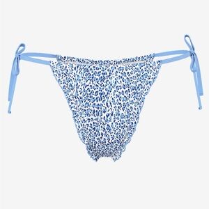 Stylish blue animal print string bikini set, perfect for a day at the beach. Enjoy comfort and fashion with this vibrant swimwear.