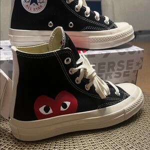 NWT CDG Converse Comme des Garcons Chucks Black White Red Heart W12/M10