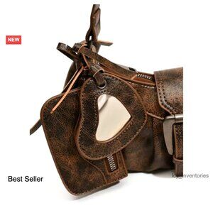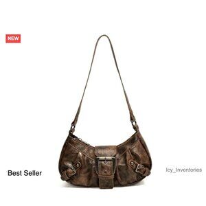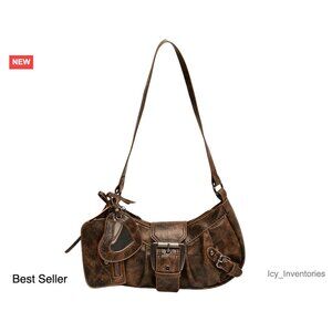 A mini shoulder bag featuring a western buckle and vintage hobo style. Made from soft, smooth material, it's water-resistant and durable, perfect for holding daily essentials like a phone, keys, and sunglasses.