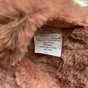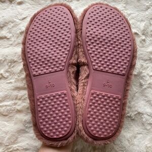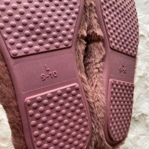 Happily Grey Faux Fur Slippers Womens L 9-10 Mauve Bow Slides Loungewear Chic