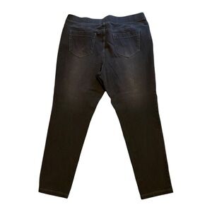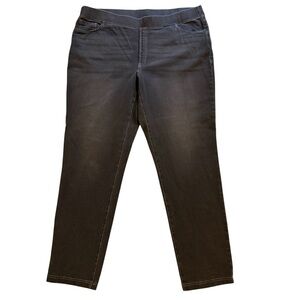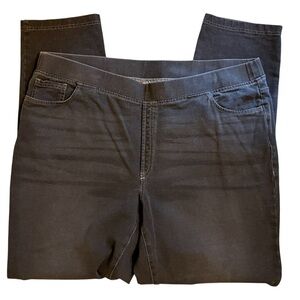 J Jill Pure Jill black knit ankle jeans. They have a ‘washed’ look to them and were purposely made that way by the manufacturer. Extremely comfortable pull on styling. Pockets front and back. Cotton with a touch of spandex for stretch.
