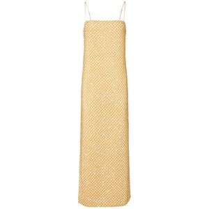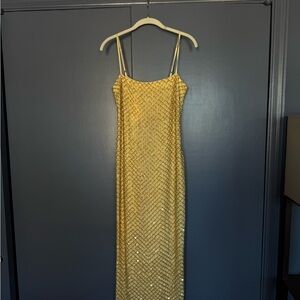 (NWT) The Petra maxi dress is elegance - a clean, column silhouette, the chiffon body is hand-beaded with a mix of glass bugle beads and paillettes in an intricate netted pattern. Finished with adjustable straps, a square neckline, and a hidden side zipper. #wedding #dress #guest
