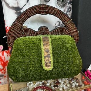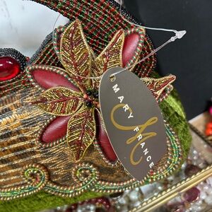 NWT Vintage Mary Frances Christmas Holly Bow Beaded Embellished Hard Case Bag