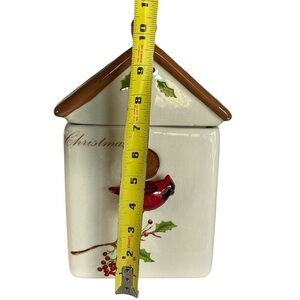 Cardinal Ceramic Birdhouse Christmas Cookie Jar Holiday Festive Party Kitchen