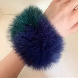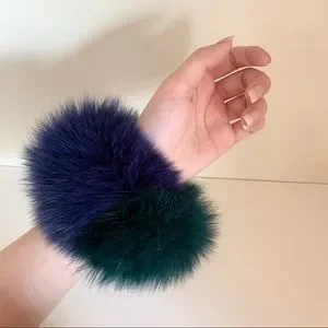 New. Never used. Charlotte Simone fox fur snap cuff bracelet. Measures 8.5”x 1” (measures 10.25”x 3.5” including lengths of fur). Half navy and half emerald green. Makes a great bracelet, bag charm, or pony tail cover.