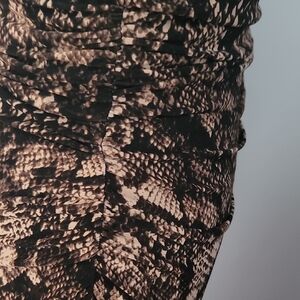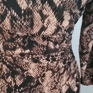 Stylish long sleeve dress with snake print. Perfect for versatile wear. Ruched side detail.