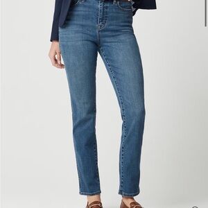 Stylish straight leg jeans by J. Crew. Comfortable fit. Versatile blue shade. Like new - worn and washed once. 28 inch inseam.
