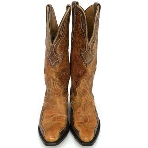 J.B. Dillon Distressed Leather Cowboy Boots Brown Cross Inlay JBW4001 Women's 7B