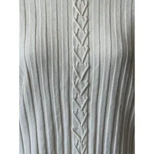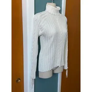 Vintage Cache Womens Turtleneck Size M Ivory Ribbed w Braided Sleeves and Front
