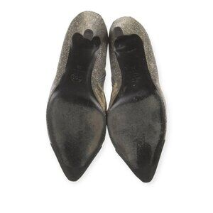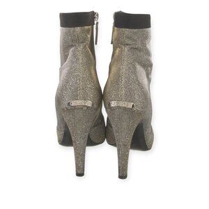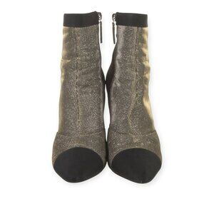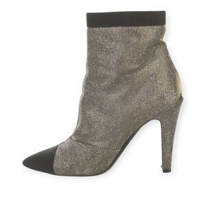 CHANEL Black Silver Metallic Pointed Toe Ankle Boots