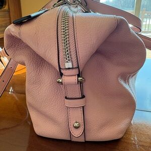 Chic Coach satchel in light pink leather. Features silver hardware and a sleek design. Bag can be made larger or smaller depending on need (attachment on sides of purse can be attached or released). Perfect for everyday elegance.