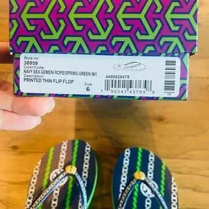 New Tory Burch Navy Sea Gemeni Rope Spring Green Flip Flops