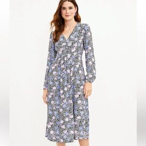 LOFT Floral Midi Dress 6 Petite NWT Long Sleeve V-Neck