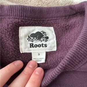 Stylish plum jogger pants and sweatshirt by Roots. Ideal for everyday comfort.