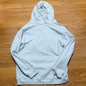 Stylish gray hoodie featuring navy star accents. Includes a cozy hood and unique lettering.