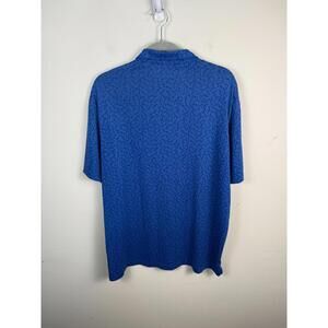 Peter Millar Crown Sport Coral Jacquard Knit Golf Polo Shirt Blue Medium