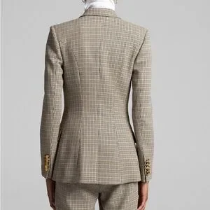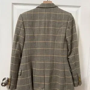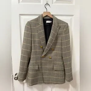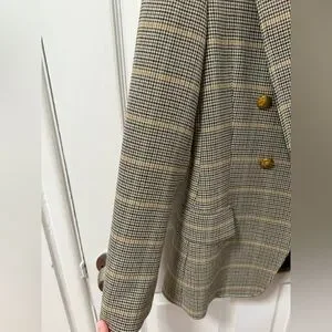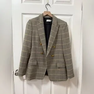 ALC Sedgwick Green Yellow Plaid Gold Double Breasted Blazer Preppy Fall Tailored