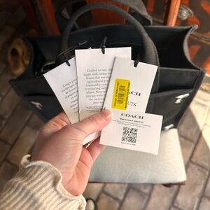 Coach x Peanuts black tote featuring a distinctive design. Embroidered Snoopys’. 3 pockets, original hangtag, crossbody strap and tags. Like New. 2025 edition, 13.5x10x5.5inches