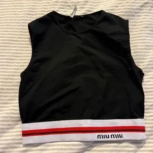 Chic Miu Miu crop top. Black with red and white band. Ideal for casual outings. Size small. Worn once