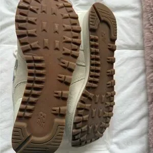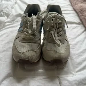 New Balance 574, women’s 7.5, cream, blue and purple coloring, good condition just minor staining on heels. Comfortable and easy to pair with anything.