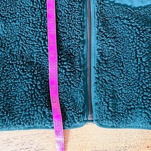 Brand new! Windproof fleece jacket for blustery, cool-weather adventures in modern boxy cut. Lined interior for smooth entry/exit and ease of layering. In "cascade green," a gorgeous dark bluish green. So cute - just had to admit that it's too big for me and can't return.