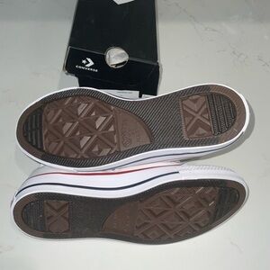 Classic high-top design with a white canvas. Red accents add a pop of color. Durable and stylish for kids.