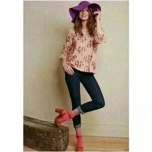 Matilda Jane Floral Kaia Peasant Top Size Medium Womens Boho Blouse Lace Detail