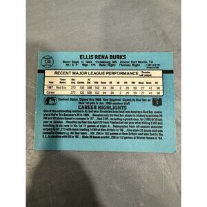 Vintage MLB baseball card featuring Ellis Burks, one of the top Red Sox hitters of the late 1980s.