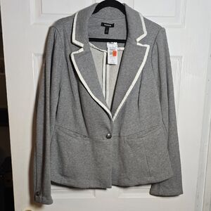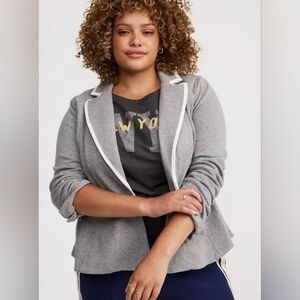 Torrid 1 1X Heather Gray Blazer with White Accents French Terry Peplum Blazer