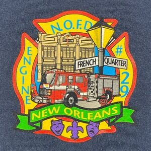 Keywords: New Orleans, NOFD, Firefighter, French Quarter, Souvenir, Graphic Tee, Engine 29, First Responder, NOLA, Navy Blue, Fire Department, Louisiana, Streetwear, Vintage Style, Collector