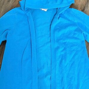 Sweet romance Open front hooded 3/4 sleeve cardigan oceanic blue medium