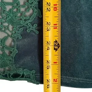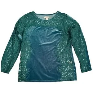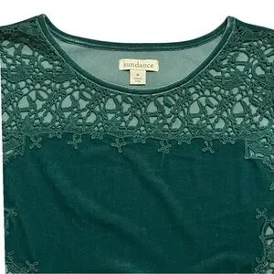 Sundance Lily's Paramour Velvet Long Sleeve Crochet Lace Top M Teal Green Boho
