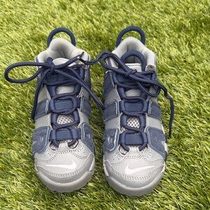 Nike Boys Air More Uptempo Georgetown Gray with Navy Blue accents.