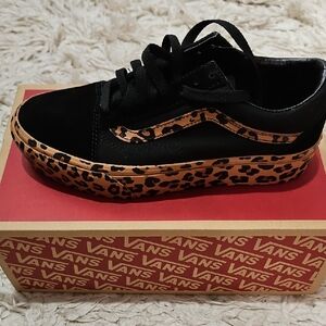 Vans sneakers with striking leopard pattern. Black upper with bold leopard details. Brand new never worn.